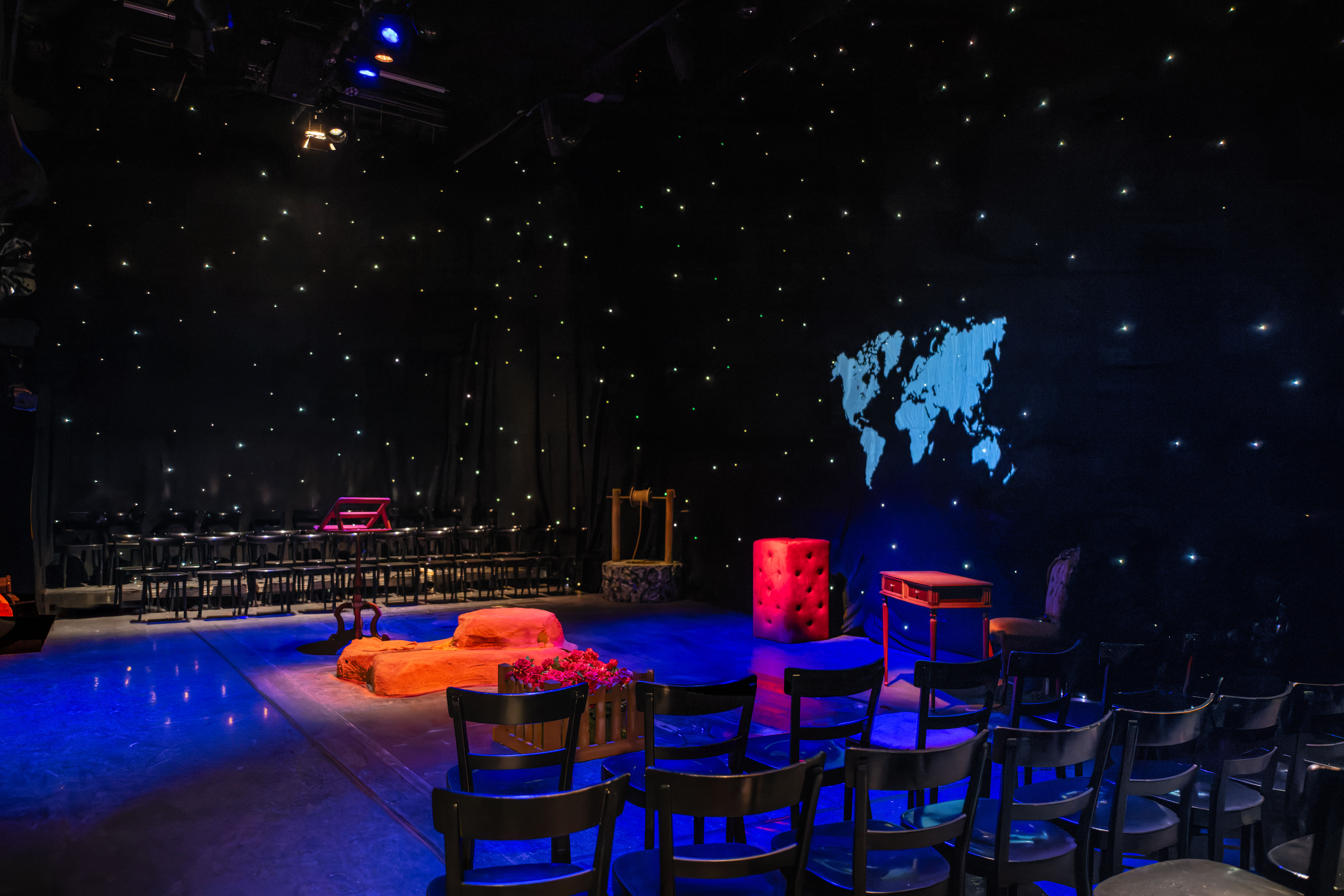 Ein Märchen mit ganz besonderem Ambiente: alle BesucherInnen nehmen auf der Bühne auf Stühlen und Kissen Platz - freie Platzwahl.